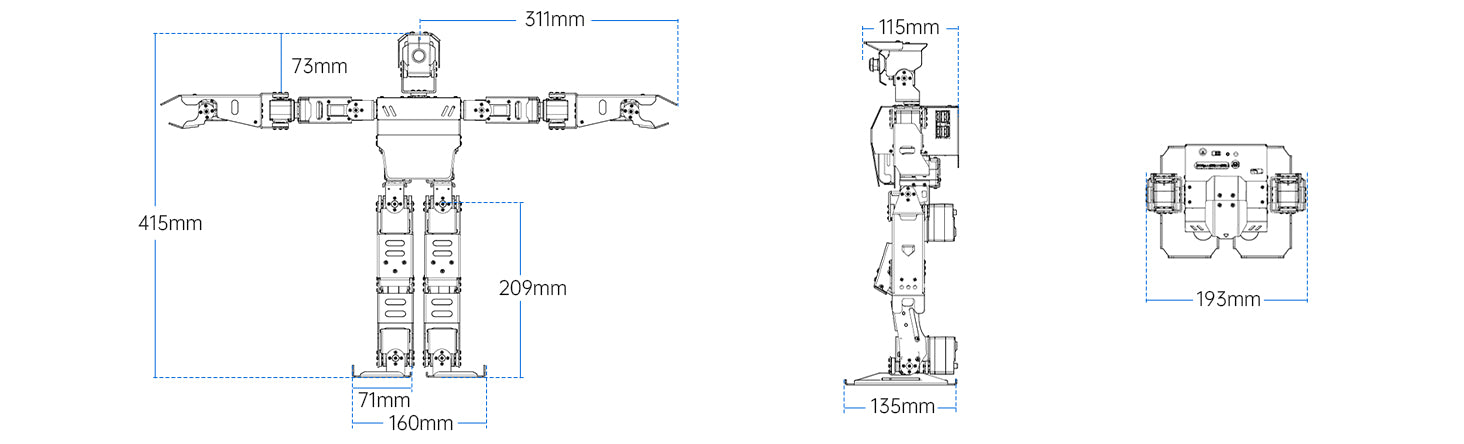AiNex standard is constructed from aluminum alloy and features up to 24 degrees of freedom (DOF), empowering the robot to execute a wide range of actions and ensuring its flexibility in movement.