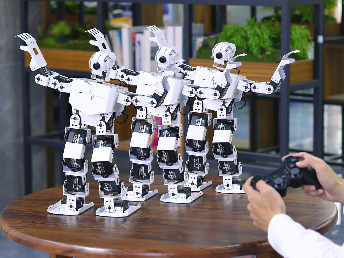 |   Real-time Voltage DisplayTonyPi Pro can display the current voltage size, which is convenient to keep an eye on the robot's battery level in real time. |   Group Control Neat MovementTonyPi Pro supports group control with the wireless handle. Only one handle can enable robots to move neatly, which is simple and interesting! |   Unlimited ExpansionTonyPi Pro can be expanded with various electronic modules to open up diverse interesting robot games. |