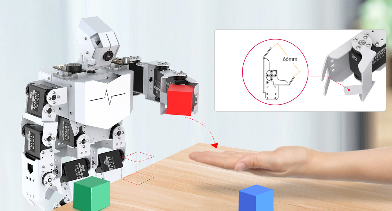 |   Movable Hands Flexible PickingTonyPi Pro has a novel robotic hand which makes it more flexible to pick and deliver small object, and applicable to more AI creative scenarios. |   Gait Upgrade Unlimited AI CreativityThrough intelligent visual detection, TonyPi Pro can realize autonomous line patrol, hurdles, and up and down steps. |