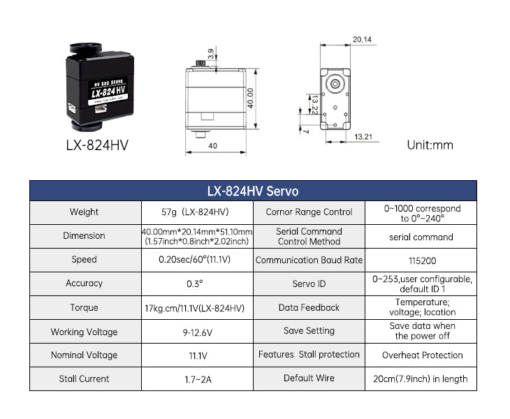 |   LFD-01M Servo Parameters |   LX-824HV Servo Parameters |