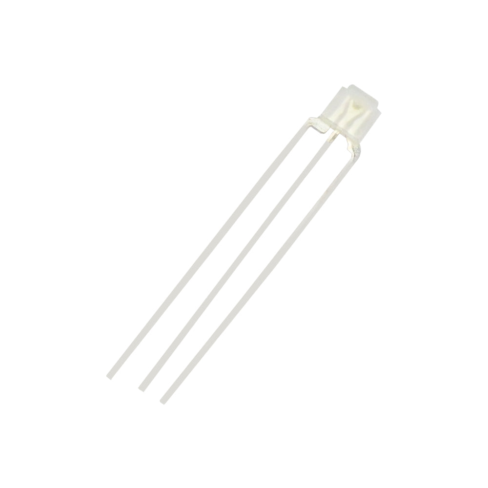 Its Colour is Clear lens white Colour,The LED has a flat or flush top surface, which means that the emitting surface of the LED is level and not raised or domed. The LED is equipped with a clear, transparent lens that helps protect the internal components of the LED and allows the emitted light to pass through without distortion., such LEDs are often used in a wide range of applications, including indicator lights, displays, lighting fixtures, and more, where a clear and focused white light output is desired.