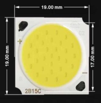The 30W COB LED in white color measures 19x17mm. This compact LED provides high brightness with energy efficiency, making it suitable for a variety of lighting applications. It offers excellent color rendering and longevity, ideal for both residential and commercial lighting solutions.