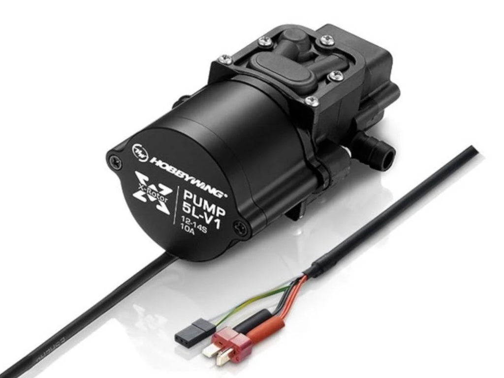 The Hobbywing Brushless Water Pump for agriculture UAV drones offers a 5-liter capacity and is designed for efficient spraying. It is ideal for precise agricultural applications, ensuring uniform distribution of liquids. This durable pump features a brushless motor, enhancing longevity and reducing maintenance needs, making it perfect for drone integration.