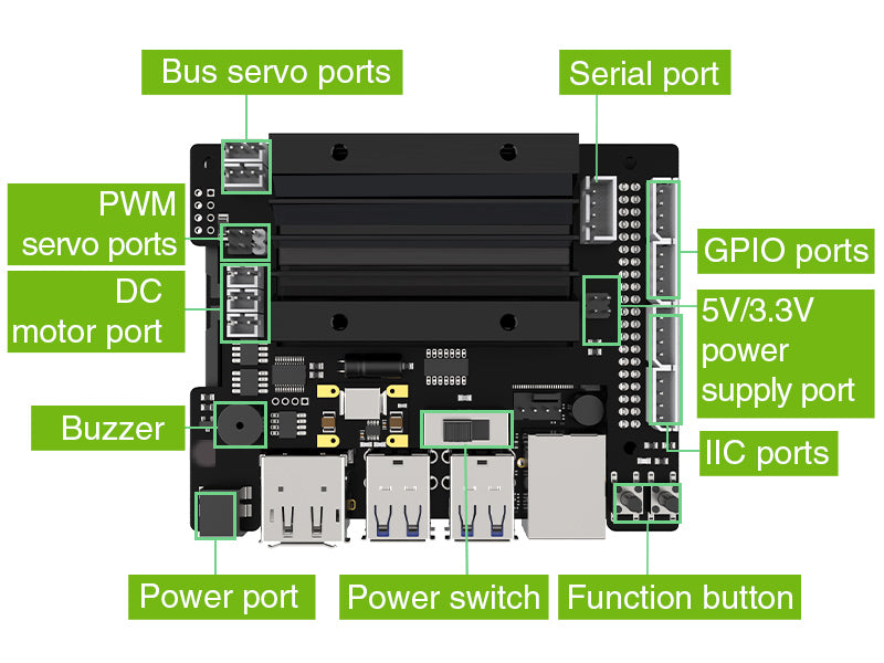 JetMax reserves a lot of sensor ports. With different sensors connected, more AI applications can be realized easily through program coding. Use your imagination, your creativity is irreplaceable!