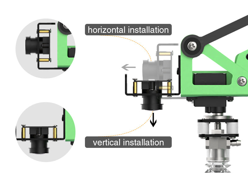 Adjustable AngleThe end camera of the JetMax can be mounted vertically and horizontally, giving JetMax a top view and a flat view for different task needs. |