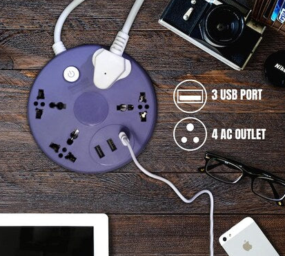A time extension cord board with 3 USB charging ports and 4 sockets combines convenience and functionality. It allows simultaneous charging of devices and powering multiple electronics. Ideal for home or office use, it often features surge protection and a durable design to ensure safety and reliability.
