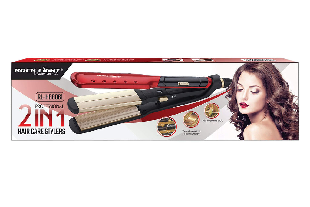 The Rock Light 2-in-1 Hair Straightener RL-HB8061 features both straightening and curling functions with adjustable temperature settings. Its fast heat-up time and ergonomic design make it versatile and user-friendly for achieving various hairstyles.