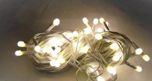A 15-meter white LED Diwali light, perfect for festive decoration, features energy-efficient bright white bulbs. Ideal for indoor and outdoor use, it creates a warm and welcoming ambiance for celebrations.